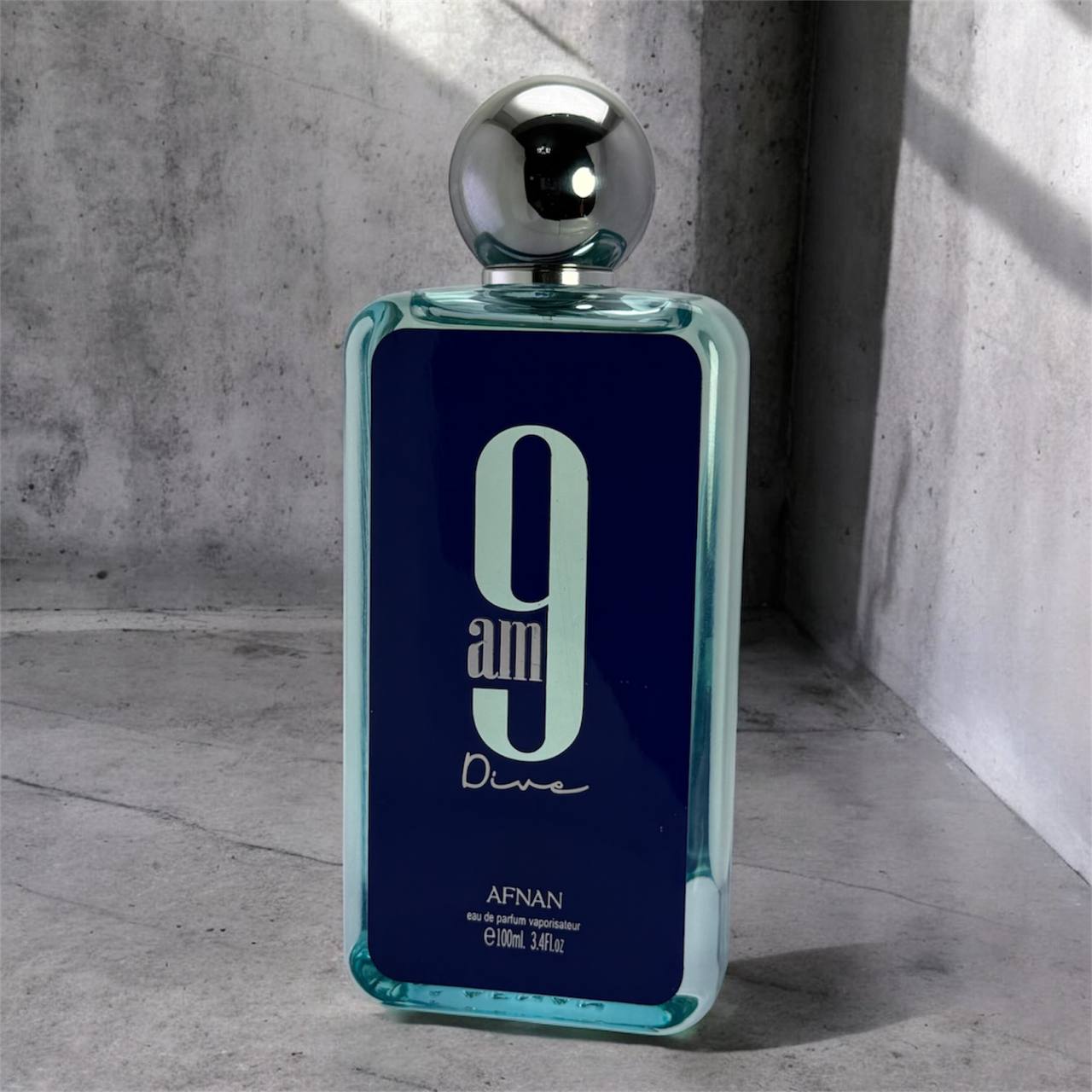 افنان 9 ایام دایو Afnan 9AM Dive یکی از محبوبترین و جدیدترین رایحههای برند جذاب افنان Afnan است. این عطر همهپسند و زیبا الهام گرفته از صبح پرانرژی، تازگی و طراوت میباشد. افنان 9 ایام دایو Afnan 9AM Dive با رایحههای آروماتیک و مرکباتی عطری است مناسب هم برای خانمها و هم آقایان برای استفاده در روزهای پرانرژی محل کار، دانشگاه و حتی قرارهای دوستانه.