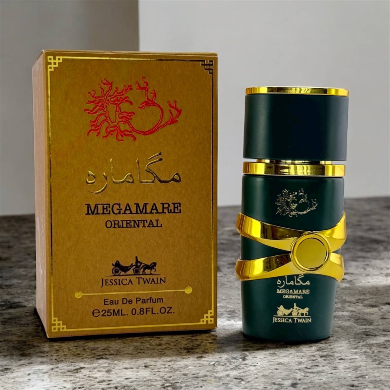 ادوپرفیوم جیبی یونیسکس جسیکا توین مدل مگاماره با رایحه گرم حجم 25 میلیلیتر