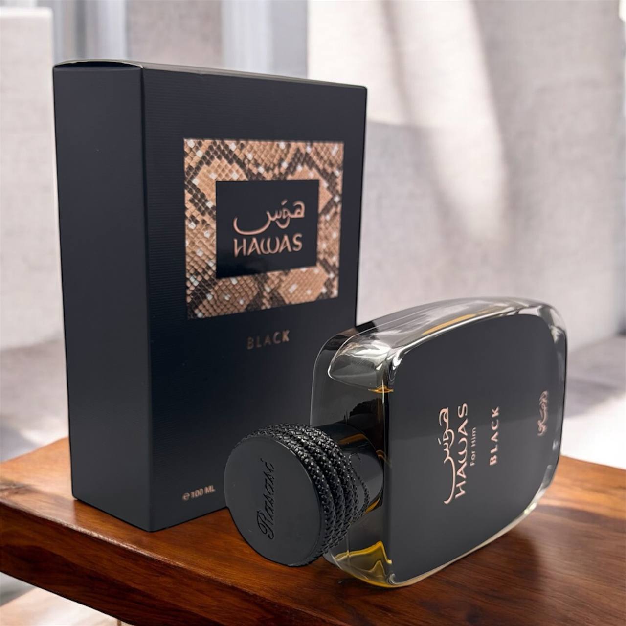 ادکلن مردانه رصاصی مدل هوس بلک فور هیم با رایحه خنک حجم 100میلی‌لیتر